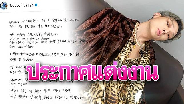บ๊อบบี้ ikon ได้ประกาศข่าวเกี่ยวกับการแต่งงานของเขาผ่านทาง instagram ส่วนตัวว่าเขาได้วางแผนแต่งงานกับคนที่เขารัก พร้อม.