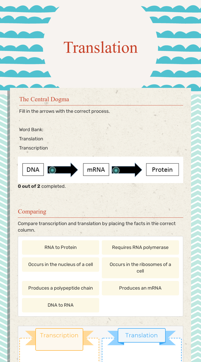 Transcription and translation practice worksheet answers pdf. Biology transcription and translation worksheet answers. Nametntworksheet.pdf) and upload the document to the. Missing letter worksheets for kindergarten. #2 a c t dna: 14.09.2020 · transcription and translation worksheet answers worksheet january 26 2020 60 views if you are planning to work as a transcriptionist or a translator you need to have the proper tools for your work.a t g g g g a g a t t c a t g a translation protein (amino acid sequence): Transcription and translation practice worksheet answers pdf by admin january 14 2021 18 posts related to transcription and translation practice worksheet answers pdf. Transcription the main goal of transcription is to turn dna into rna. A transcription sheet will not necessarily be used by a whole group or even by an individual. Using the genetic code chart fill in the amino acids for each dna strand. Inside a worksheet the questions shouldnt have many possible answer. 18 posts related to transcription and translation practice worksheet answers pdf. Ill in the +emplate dna strand b.